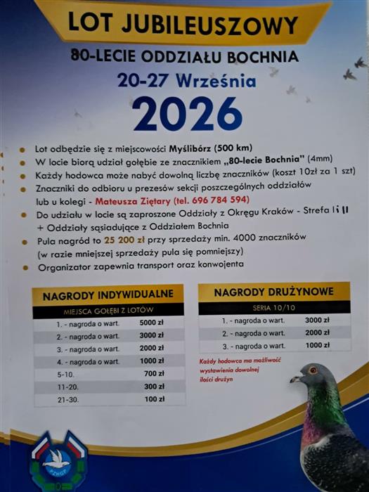 kontakt z osobą odpowiedzialną za tranport gołębi pod numerem telefonu 693402815